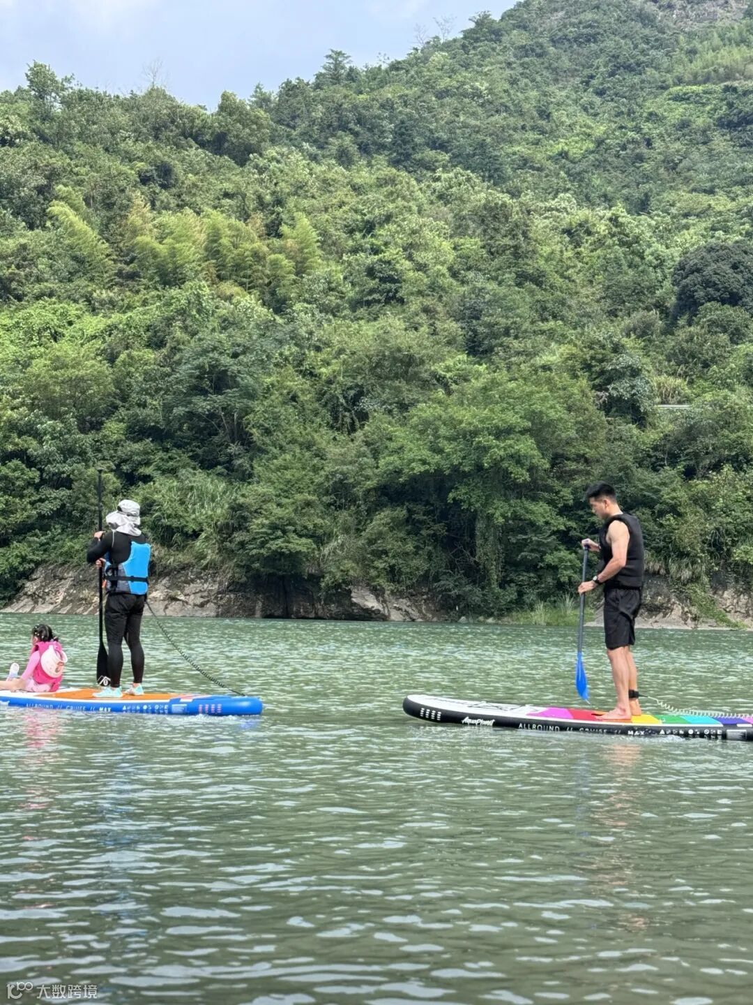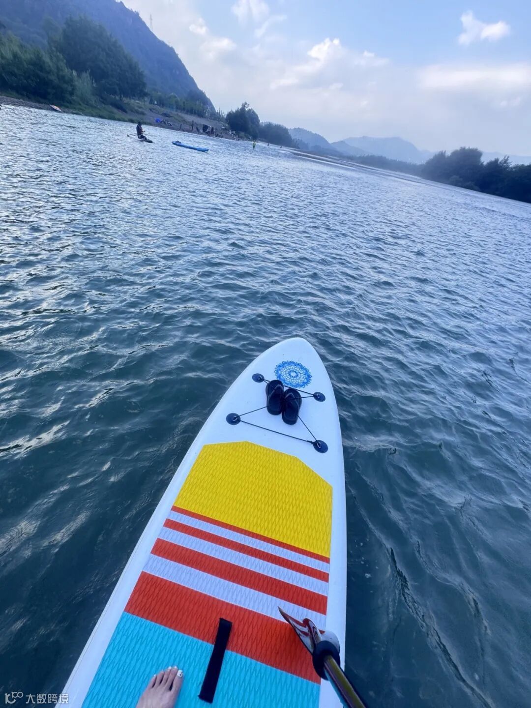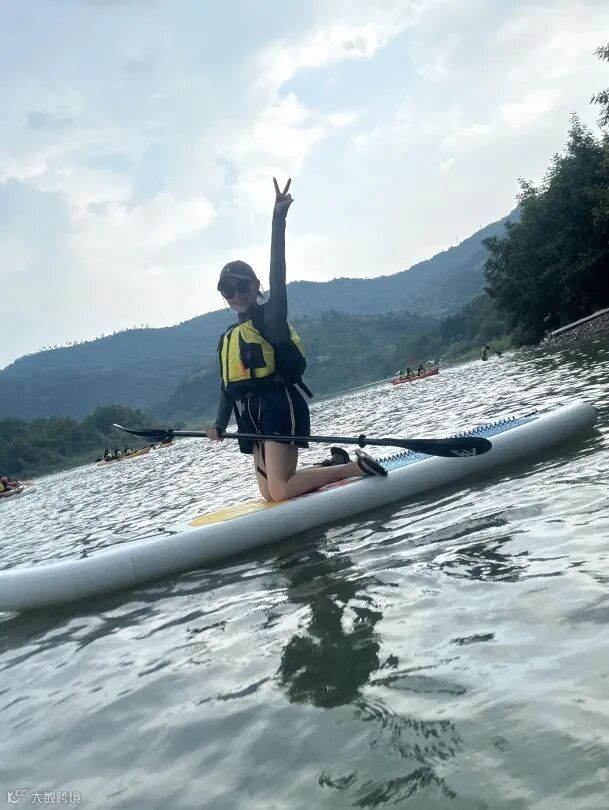 江水轻柔地拍打着岸边,宛如一位优雅的舞者,向我们伸出了邀约之手。我们穿着救生衣,踏上了桨板,在碧波的水上滑翔。