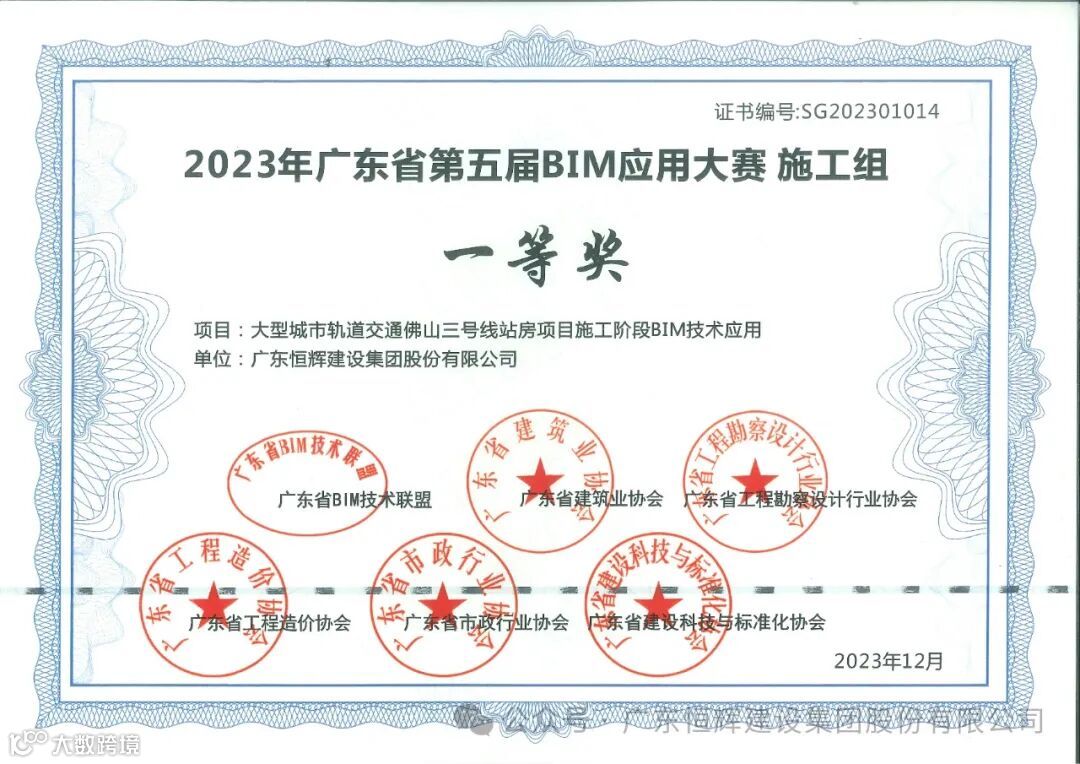 近日,由广东省住房和城乡建设厅指导的广东省第五届BIM应用大赛获奖名单新鲜出炉,其中由恒辉建设集团参与的“大型城市轨道交通佛山三号线站房项目施工阶段BIM技术应用”取得新突破,荣获“2023年广东省第五届BIM应用大赛施工组一等奖“。