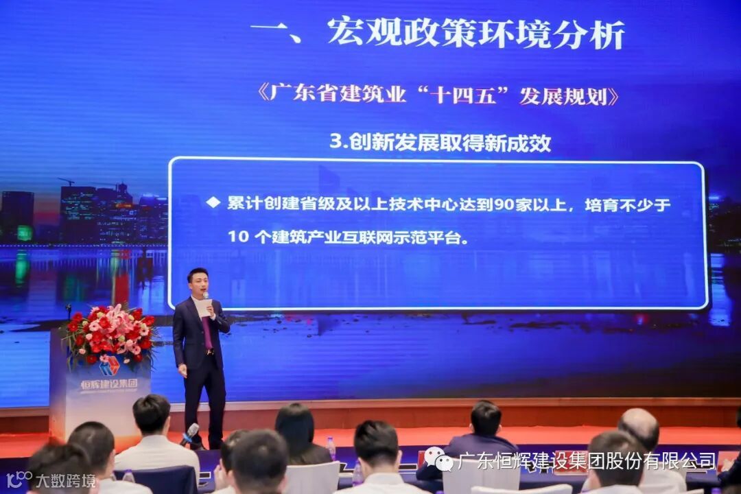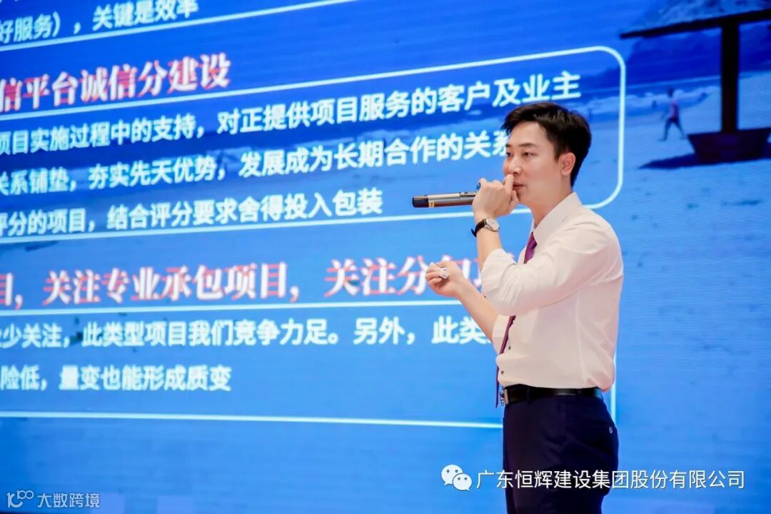 第三项,由总裁陈壮伟部署集团目标战略,并作分公司经营支持政策及激励方案。他从国家政策环境分析当前建筑业的现状,提出集团2023年重点战略部署,即:完成资质升级、重振业务体量规模、拓展分公司版图区域、突破品牌创新瓶颈。同时下达了集团2023年经营目标任务,要求全体恒辉员工坚定发展信心,紧跟国家政策方针,盯紧经营市场,做好做优项目管理,在风高浪急的建筑市场中突出重围。2023年,集团总部将从费用类资源政策、服务类资源政策以及多项奖励措施支持各分公司各项工作,助力分公司、集团总部经营业务再上新台阶。