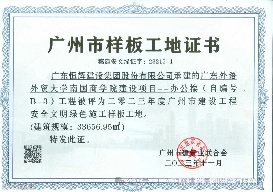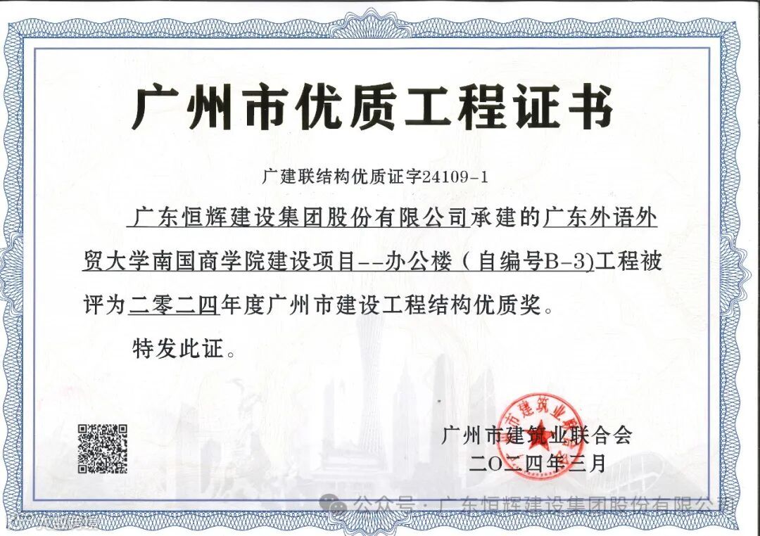 此前已交付使用的南国商学院一期办公楼已获“2023年广东省建设工程项目施工安全生产标准化工地”“2023年广东省房屋市政工程安全生产文明施工示范工地”“2024年广州市建设工程结构优质奖”“2023年广州市建设工程安全文明绿色施工样板工地”等多项省市级荣誉。二期教工宿舍项目与三期学生宿舍项目正在积极准备申报市结构、市双优奖项,期待后续好消息!