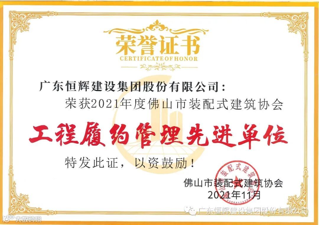 为引导和鼓励装配式建筑企业诚实守信、合法经营和履约,实现装配式建筑的可持续发展。我司被协会授予“工程履约管理先进单位”荣誉称号。