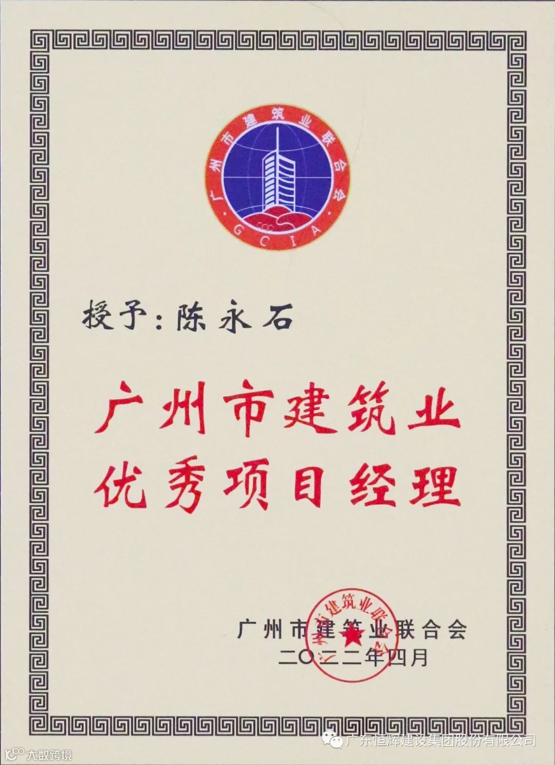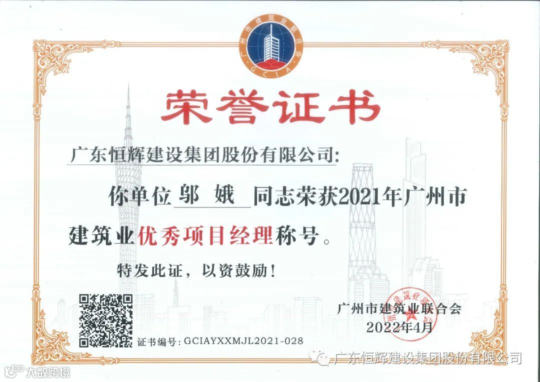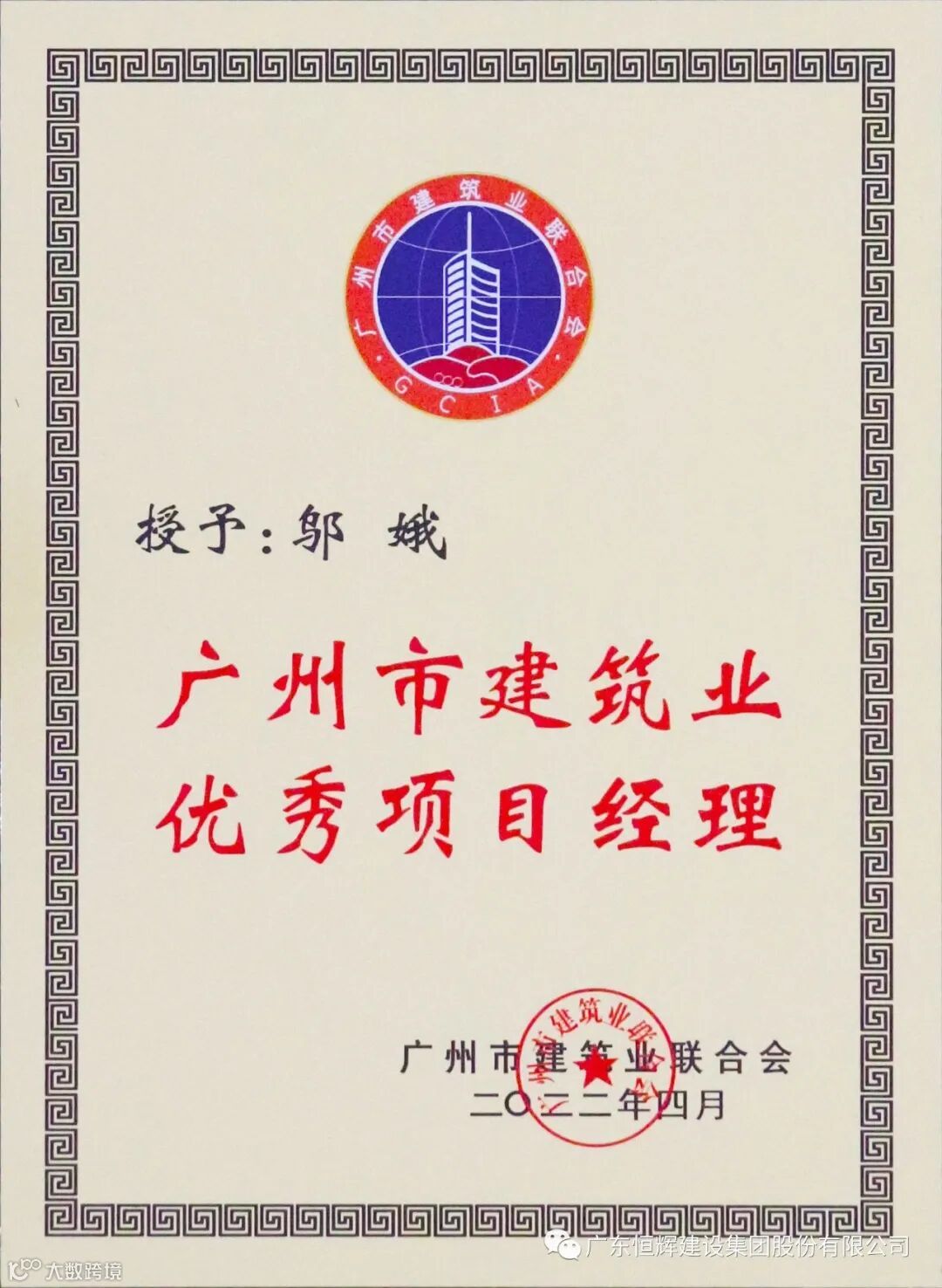 随后,协会表彰“优秀项目经理”、“安全生产先进工作者”等荣誉。其中,项目经理邬娥、陈永石被授予“广州市建筑业优秀项目经理”;质安部徐江文被授予“广州市建筑业安全生产先进工作者”。
