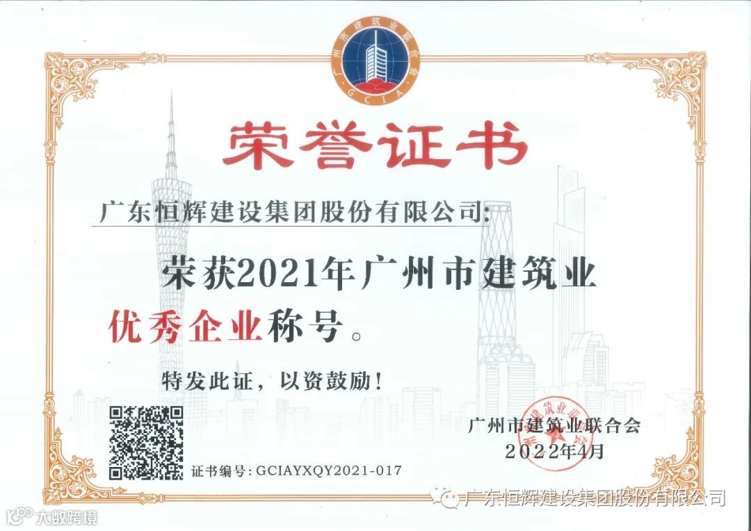 荣誉,是对恒辉建设集团的认可,更是一种激励与鞭策。集团公司将以此为动力,站在更高更新更强的平台上,担当作为,一往无前,为广州市乃至全国建筑业事业中留下更多的浓墨重彩!