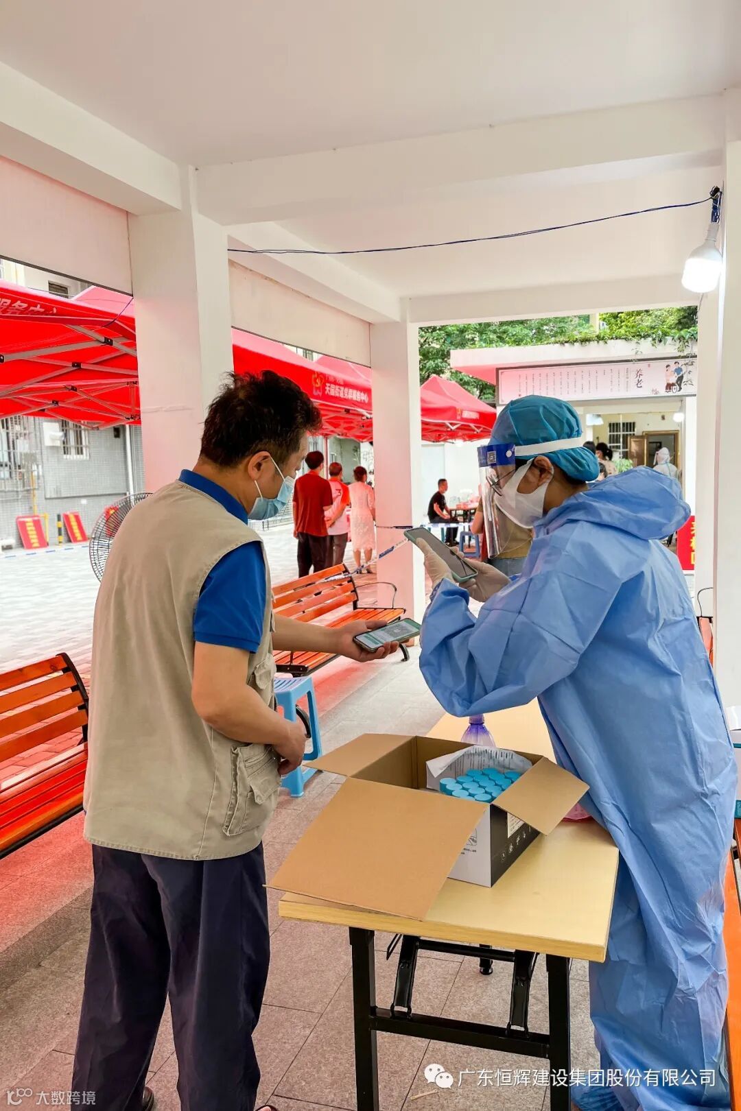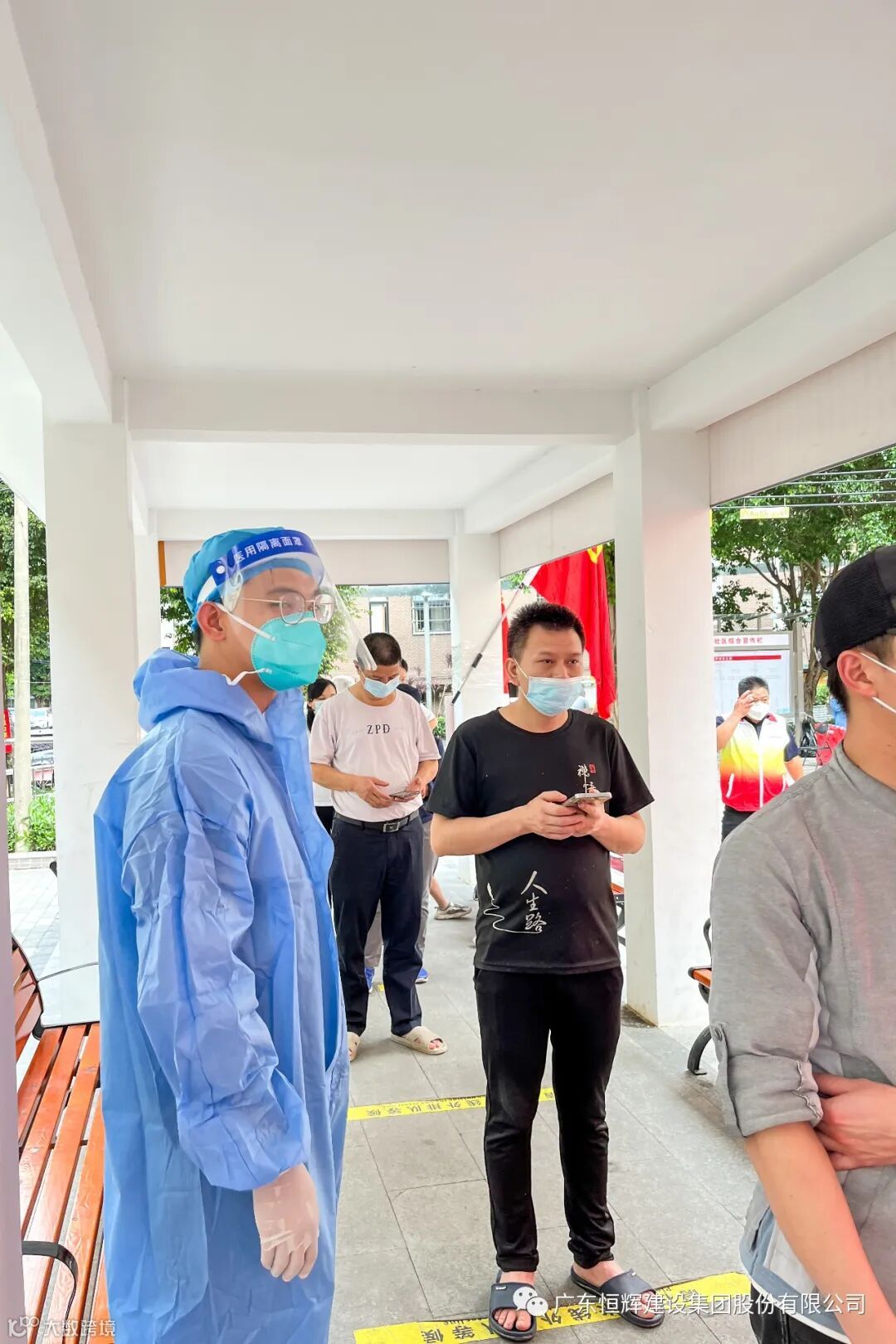 并肩战“疫”,众志成城。4月12日,恒辉志愿者分批支援了天河区天园街道腰岗社区、番禺区东环街道甘棠村疫情防控工作。在街道的统筹安排下快速认领不同岗位的支援任务,有的负责测温,有的负责指引,有的负责维持秩序,有的负责答疑解惑,有的负责信息登记。核酸检测过程中遇到不少老人不懂使用智能手机,恒辉志愿者耐心地为老人解疑,为其提供一对一登记和指引路线。一名恒辉志愿者表示:“疫情之下,要用多一点心和多一分力照顾好老人和小孩,切实保障好他们的安全。”