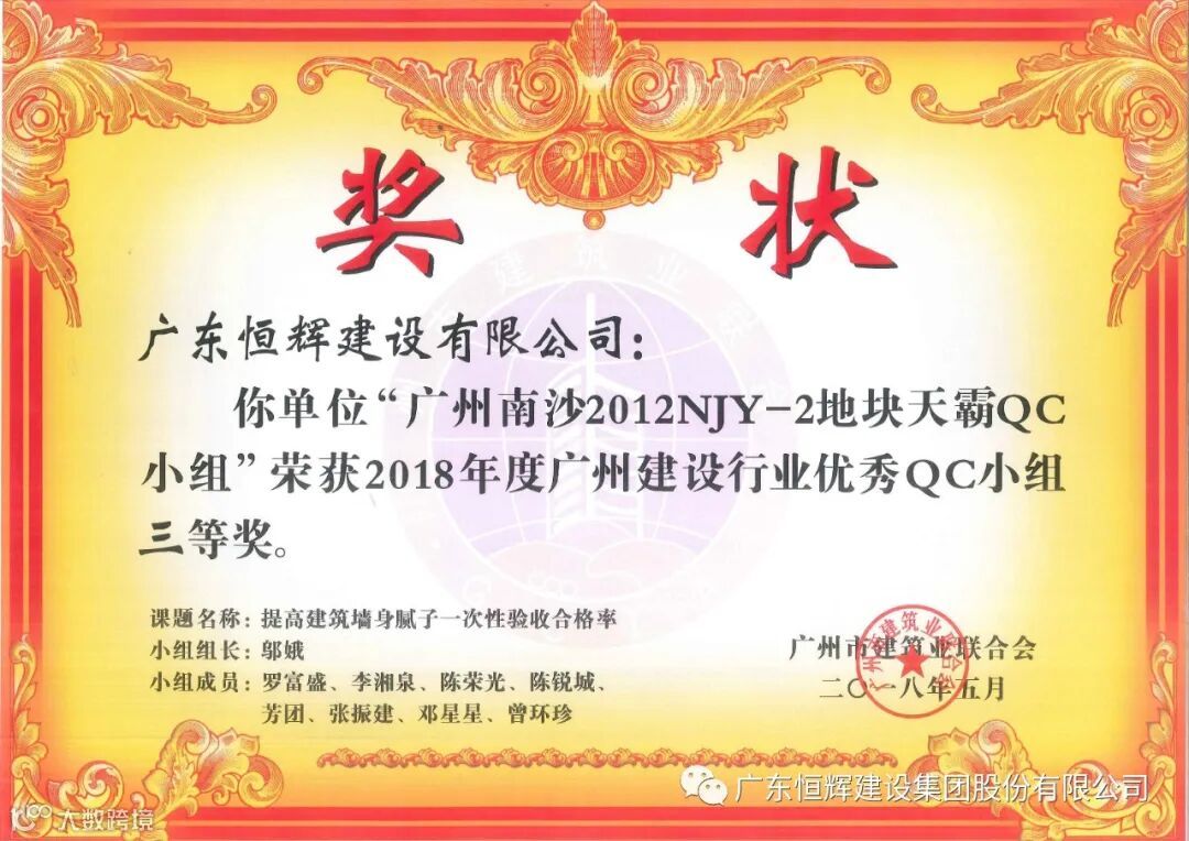 “广东省建设工程优质工程奖”、“广东省建设工程金匠奖”是广东省工程建设领域跨行业、跨专业的省级质量综合奖。该奖项的获得为广州市南沙区城市基础建设成为形象工程、精品工程打下坚实基础;为高州市惠民政策的落实与执行,成为老百姓的幸福民生工程发挥不可磨灭的作用。为恒辉建设集团打造城市品牌形象贡献力量。
