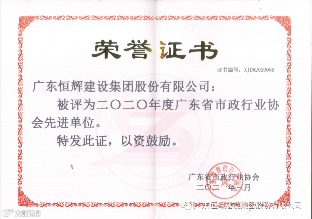 在省住房和城乡建设厅、省社会组织管理局的指导下,为表彰先进、树立典型,激励企业积极性,按照《广东省市政行业协会先进单位评选办法》。近日,省市政协会公布了关于“2021年度广东省市政行业协会先进单位”表彰榜单,其中恒辉建设集团占据一席。