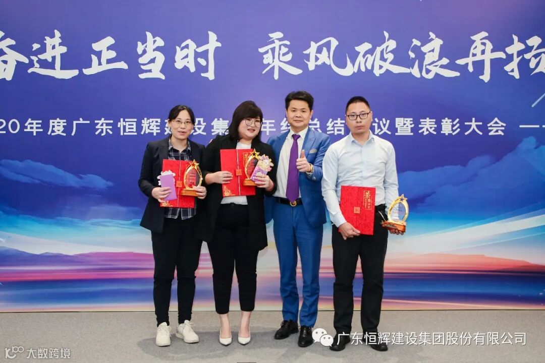 会议最后现场宣读了恒辉建设集团2020年度表彰决定,并分别向获得“忠诚贡献之星”、“最佳服务之星”、“最佳学习之星”、“优秀新人”、“优秀员工”、“优秀管理者”、“优秀区域经理”、“优秀业务经理”、“优秀党员”、“优秀项目部”、“创优先进奖”、“优秀部门”、“优秀分公司”的获奖部门及个人颁发奖杯、奖牌及奖金。