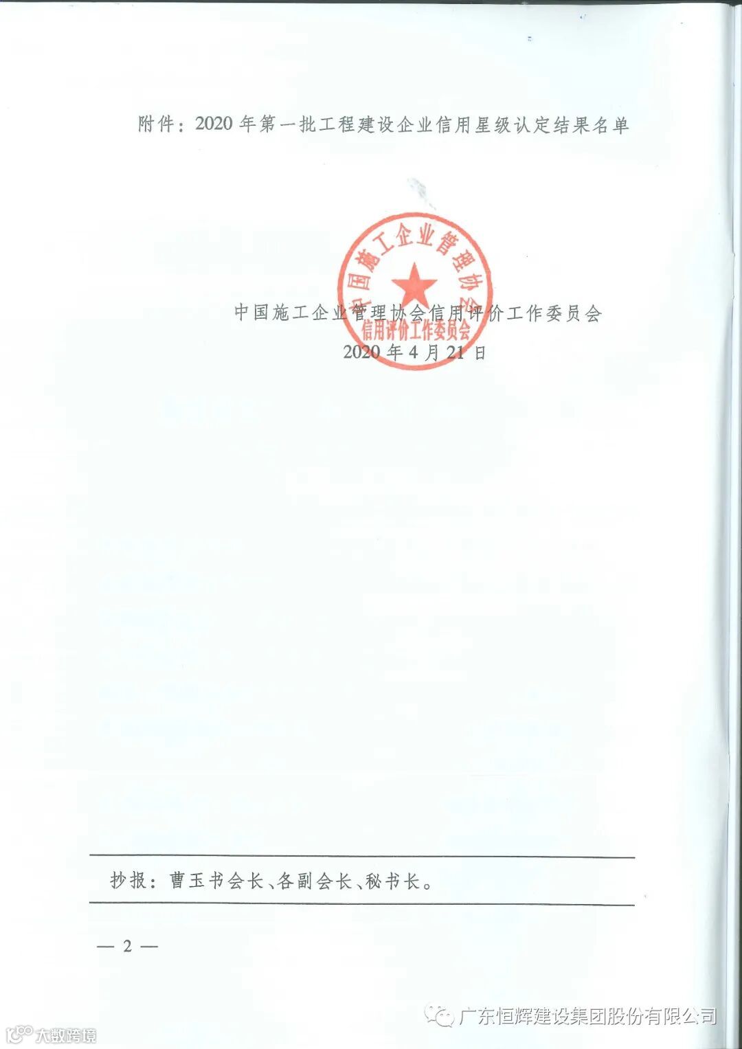 公布2020年度工程建设AAA级信用等级企业名单、工程建设企业信用星级认定结果以及推介企业诚信建设先进经验
