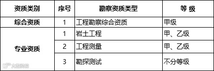 保留综合资质。将4类专业资质及勘察劳务资质整合为岩土工程、工程测量、勘探测试等3类专业资质。