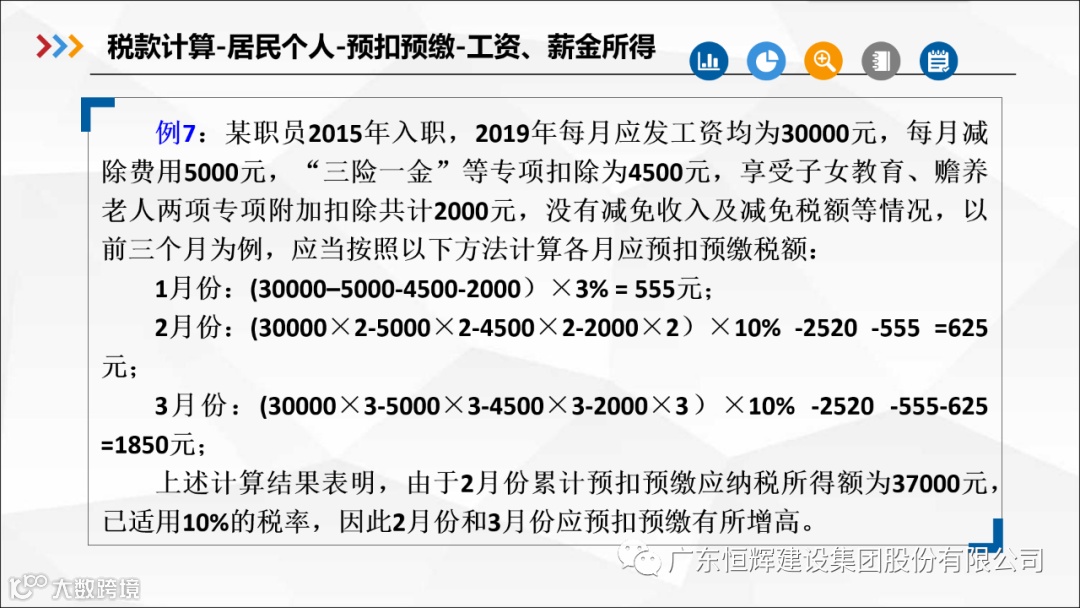 紧接着,黎信翠继续讲解六项专项附加扣除的相关知识。六项专项扣除包括:子女教育、继续教育、大病医疗、住房贷款利息或者租房租金、赡养老人,与每位员工的纳税息息相关。黎信翠对每一项专项扣除政策及其办理途径一一作出了详尽、专业的解读,并通过例题分析,进一步加深同事们对该知识点的理解。