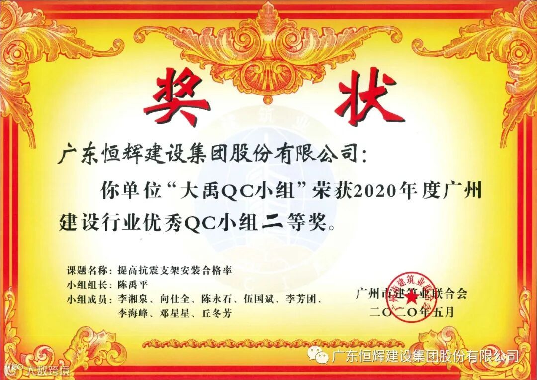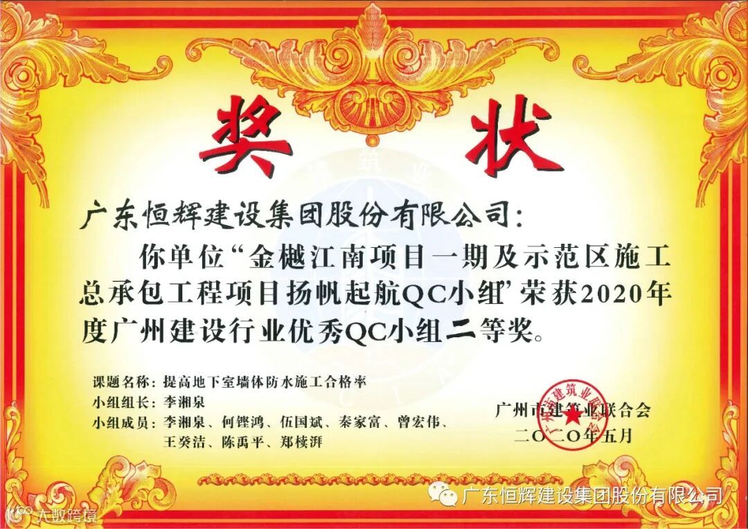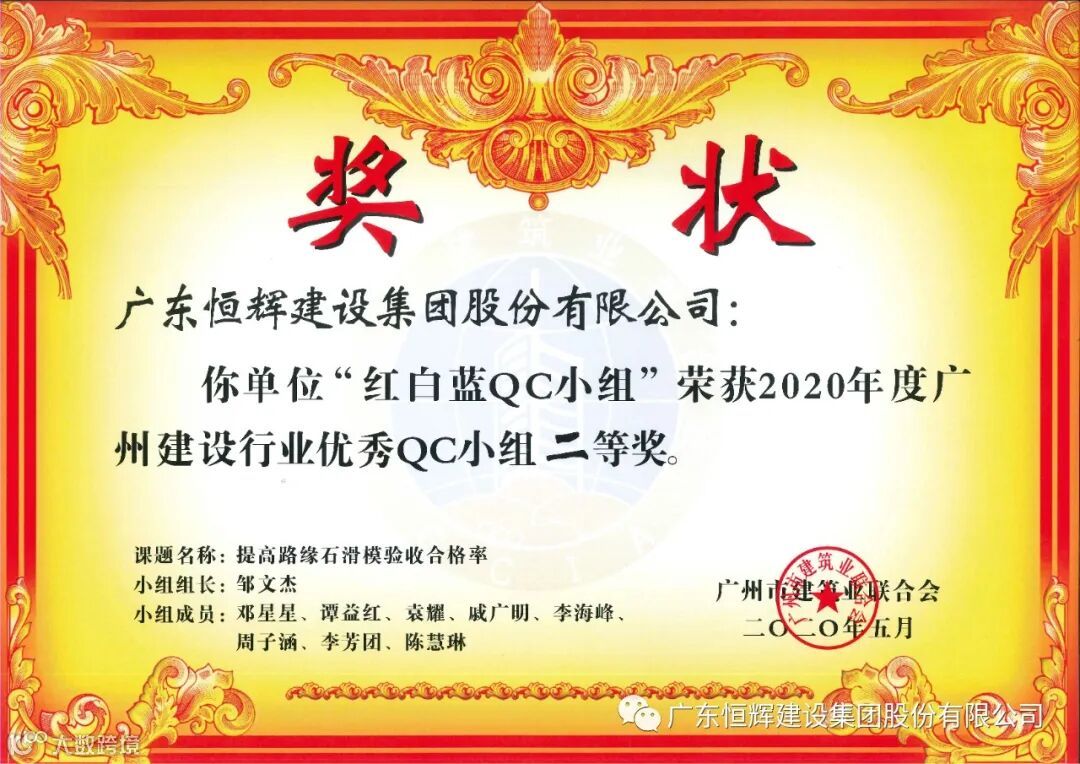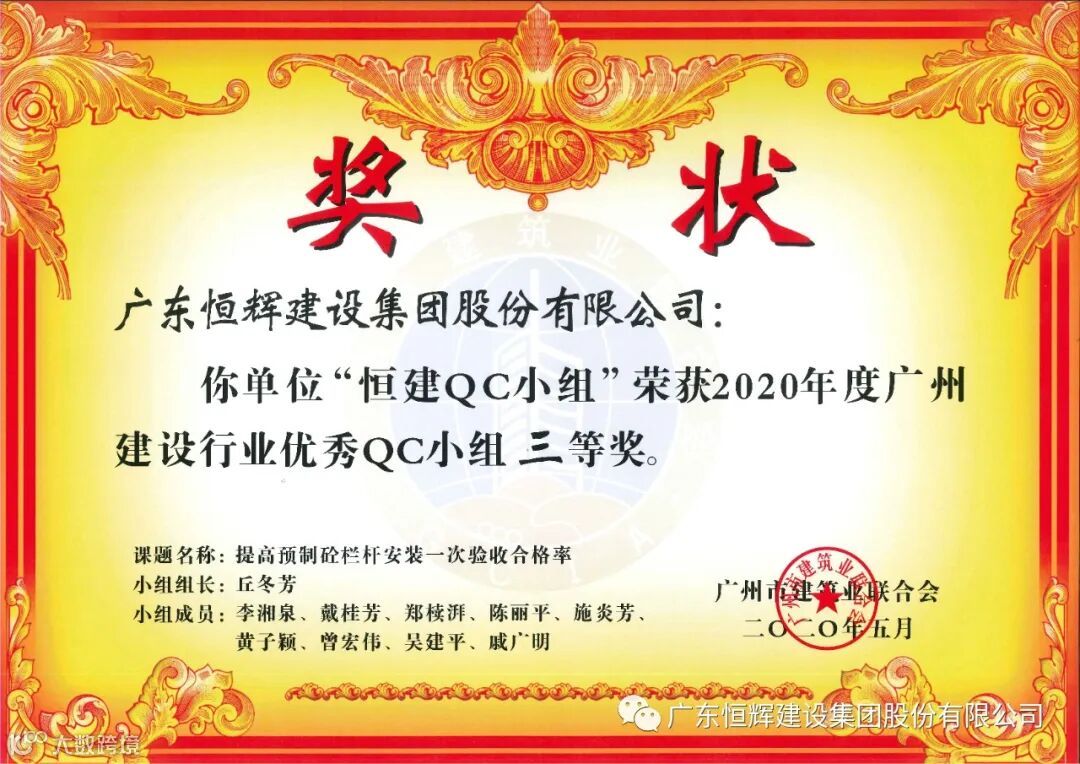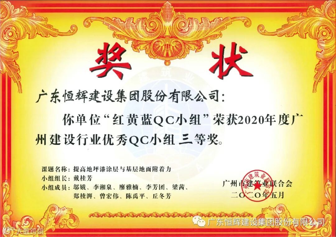 近日,广州市建筑业联合会发布了“关于表彰2020年度广州建设行业质量管理小组活动优秀QC小组”的评定结果。