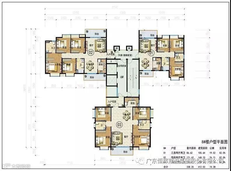 该项目建筑面积约94233㎡,由6栋住宅楼组成,涵盖商铺、地下室、架空层、停车场等,共468套房源,地下停车位568个。工程预计建设时间为32个月,工程造价约为2.98亿元。二期楼栋高度从南向北呈阶梯级递增,楼高25-30层。户型主打86-140平方米的三四房,2梯3户设计。从户型图来看,基本为南北对流户型,通风采光较好。