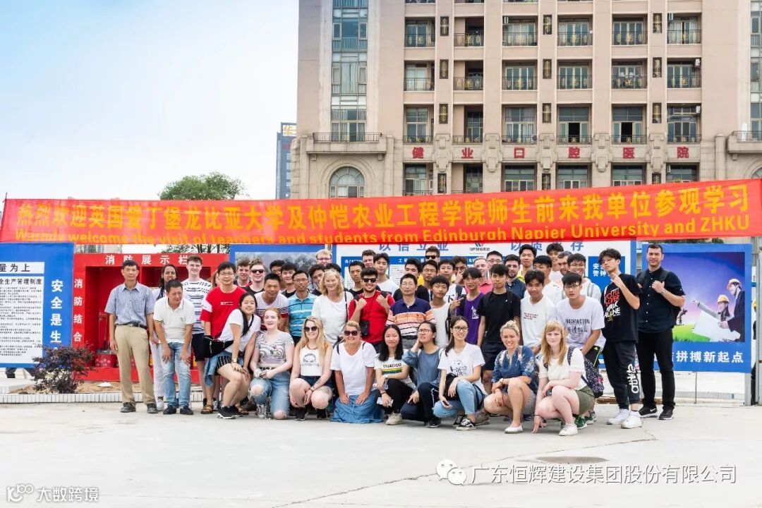 2019年5月24日上午,英国爱丁堡龙比亚大学、仲恺农业工程学院等五十余名师生来到恒辉建设集团天宇花园项目部交流学习。恒辉建设集团总工程师、副总经理李湘泉组织并热情接待了来访师生,质安部经理罗富盛等公司及项目主要管理人员陪同此次交流活动。
