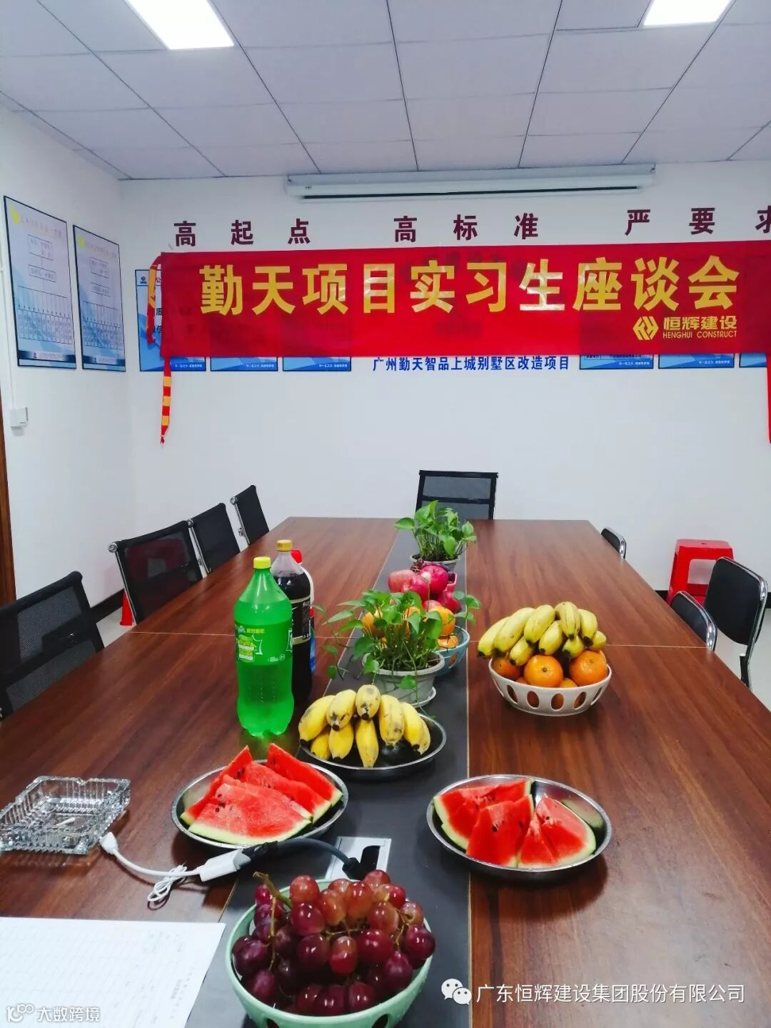 4月22号晚7点,恒辉建设集团勤天项目部在勤天项目基地举行新生力座谈会。项目负责人梁烈、生产负责人林康伦以及项目相关管理人员参加座谈会,聆听了5名新生力的心声,了解新生力的生活、所感所想以及近阶段的学习成果和学习目标,解决他们的困难,解答他们的困惑。
