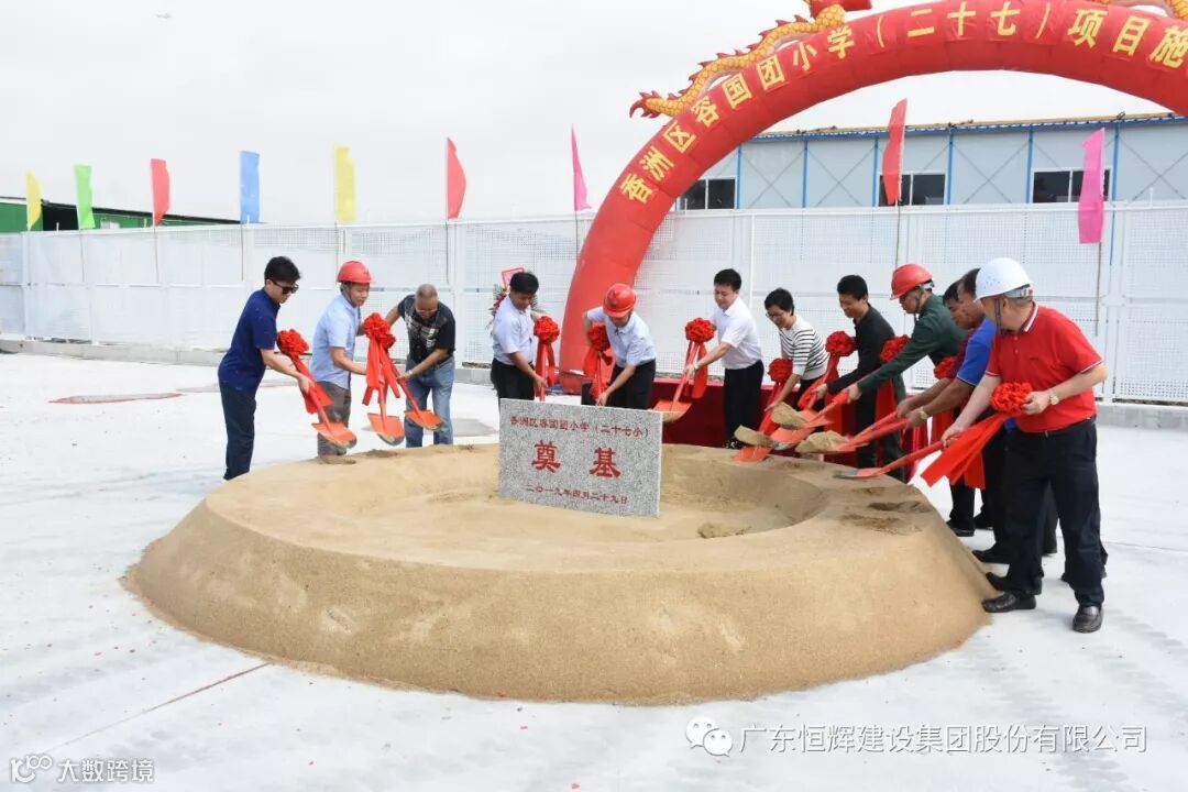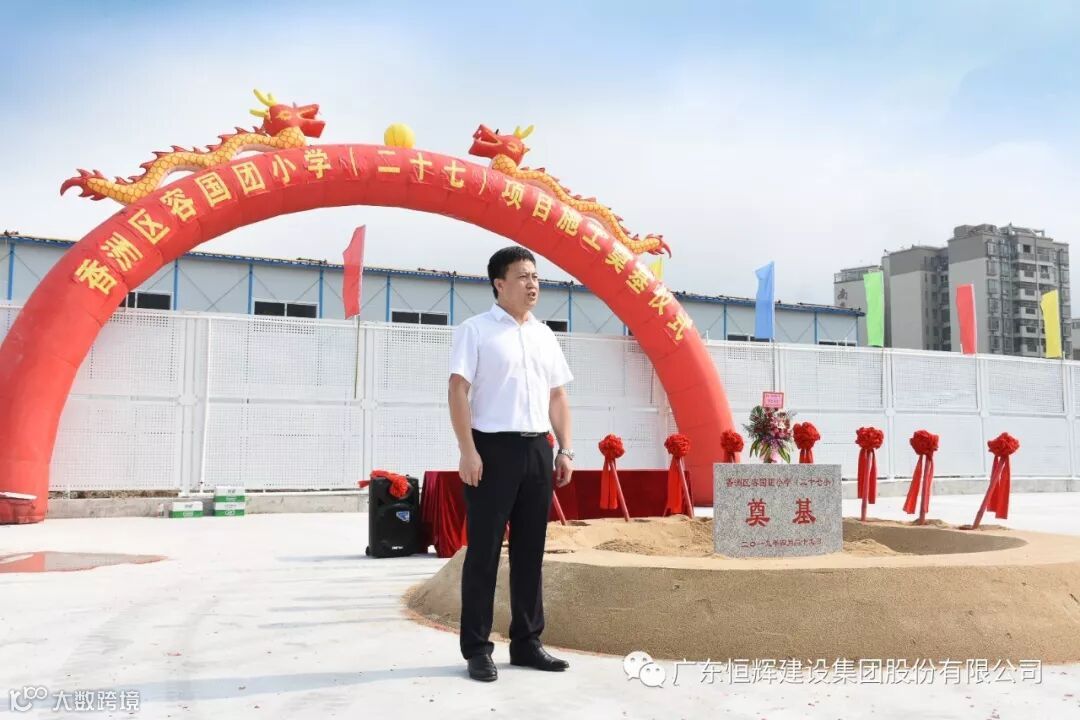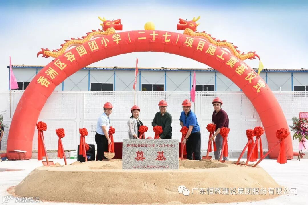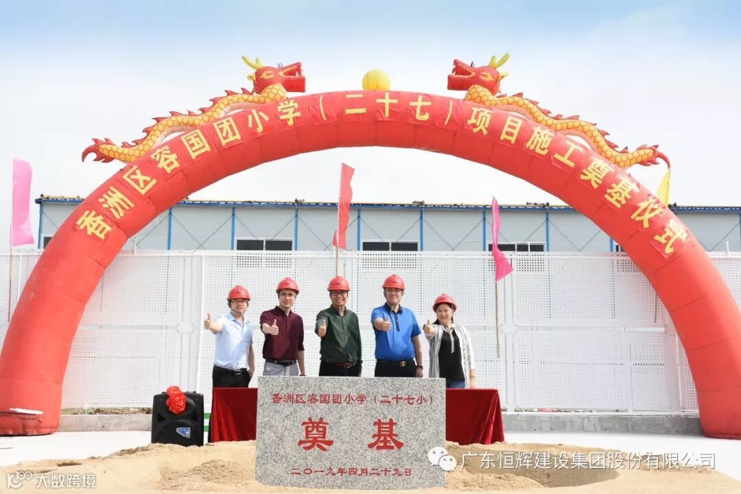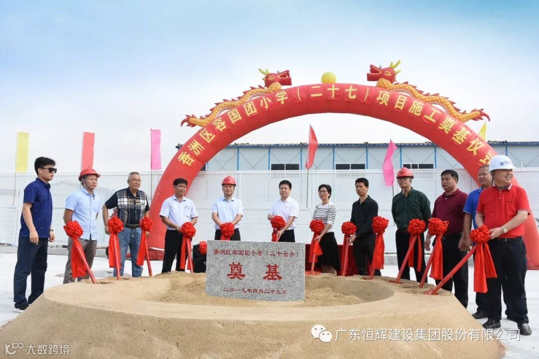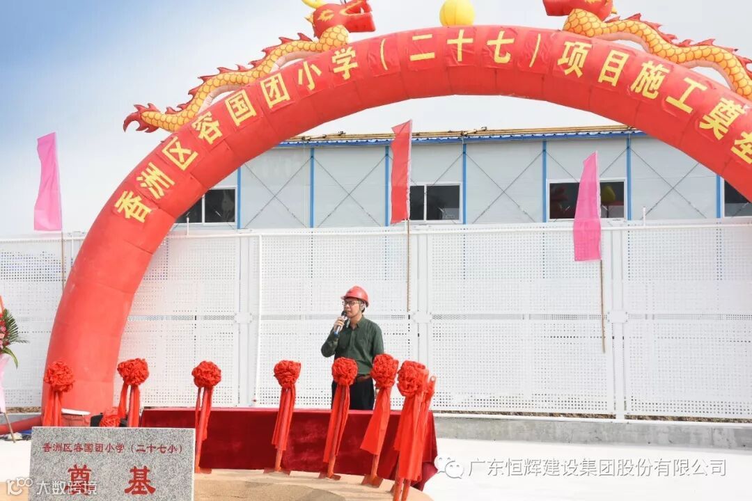 4月29日上午,香洲区容国团小学(二十七小)工程施工现场彩旗飘扬,鼓声阵阵,阳光明媚,现场洋溢着热烈的气氛。由恒辉建设集团总承包的香洲区容国团小学工程奠基仪式在这里顺利举行。