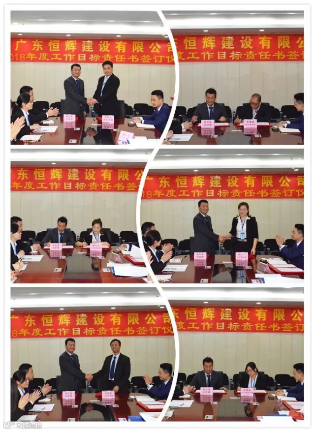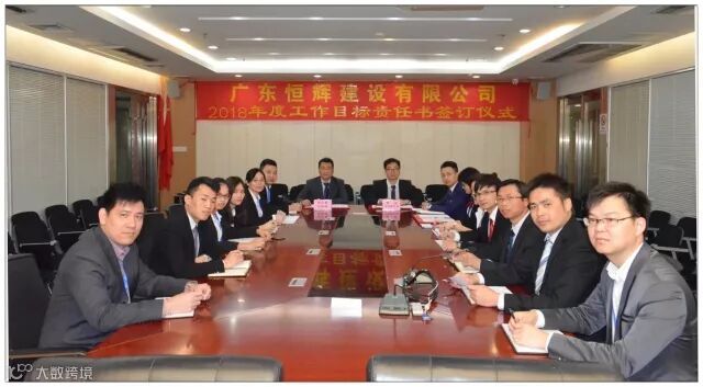 2018年年初,恒辉建设公司提前部署,筹划2018年目标任务,多次组织召开了公司管理层会议,讨论2018年度目标计划和工作安排。本次年度工作目标责任书的签订,也是在集体会议及单独约谈等不同方式的多次讨论基础上,层层分解,突出重点和难点,确立考核内容及评分标准,分别制定了各责任部门的工作目标责任书。