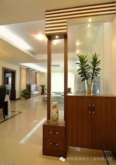 1.客厅玄关的间隔应以下面实心,防止外泄,上面以通透为主。因此可以用通透的磨砂玻璃或者空心博古架之类的。