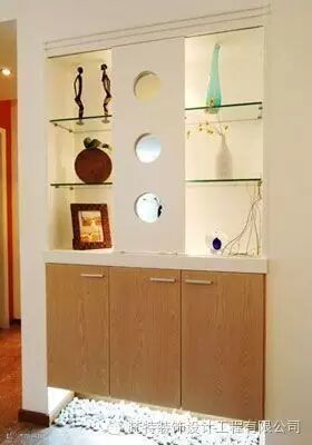 3.客厅玄关的间隔不宜太高或太低,而要适中。一般以两米的高度最为适宜,下面可以做柜子之类,高八十八公分左右。上面可用博古架之类的,若是客厅玄关的问隔太高,处身其中便会有压迫感。风水学上认为,客厅玄关如果设置得太高,就会完全阻挡了屋外之气,从而隔断了来自大门的新鲜空气或生气,是非常不可取的。而太低,则没有效果,无论在风水方面以及实用方面均不妥当。