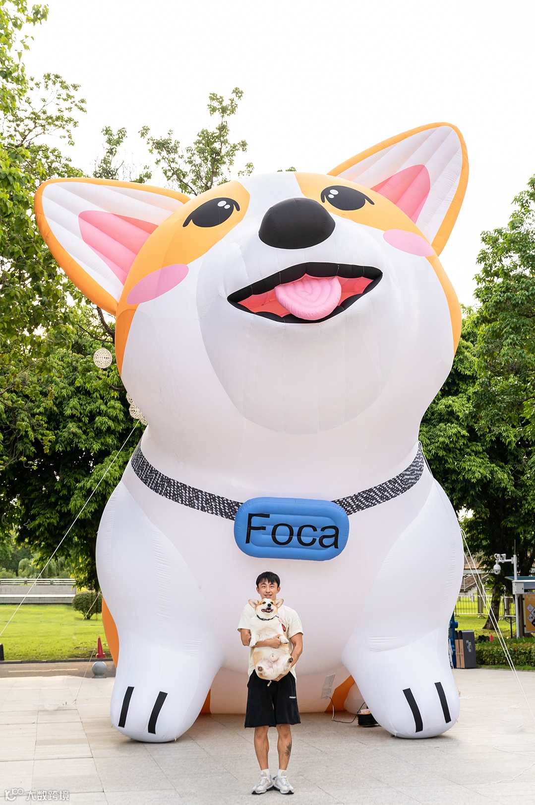 8月4日,莞香印巷的4栋萤火广场,8米高的巨型气模,这只叫Foca的柯基打卡了各大社交平台的版面。