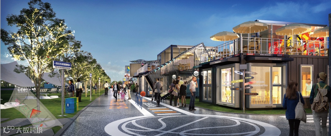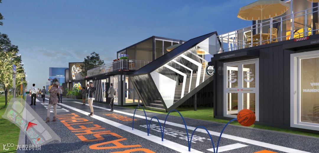 ▲东莞篮球中心集装箱街区项目夜间效果图
