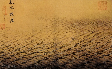 南宋四家之一,马远的《水图》中,勾勒了一幅不同条件下江河湖海的运动状态,奇幻多姿。把平远、迂回、盘旋、汹涌、激撞、跳跃,以及微风吹起的微波,月光反映的滟荡等水的动态,画得十分动人。