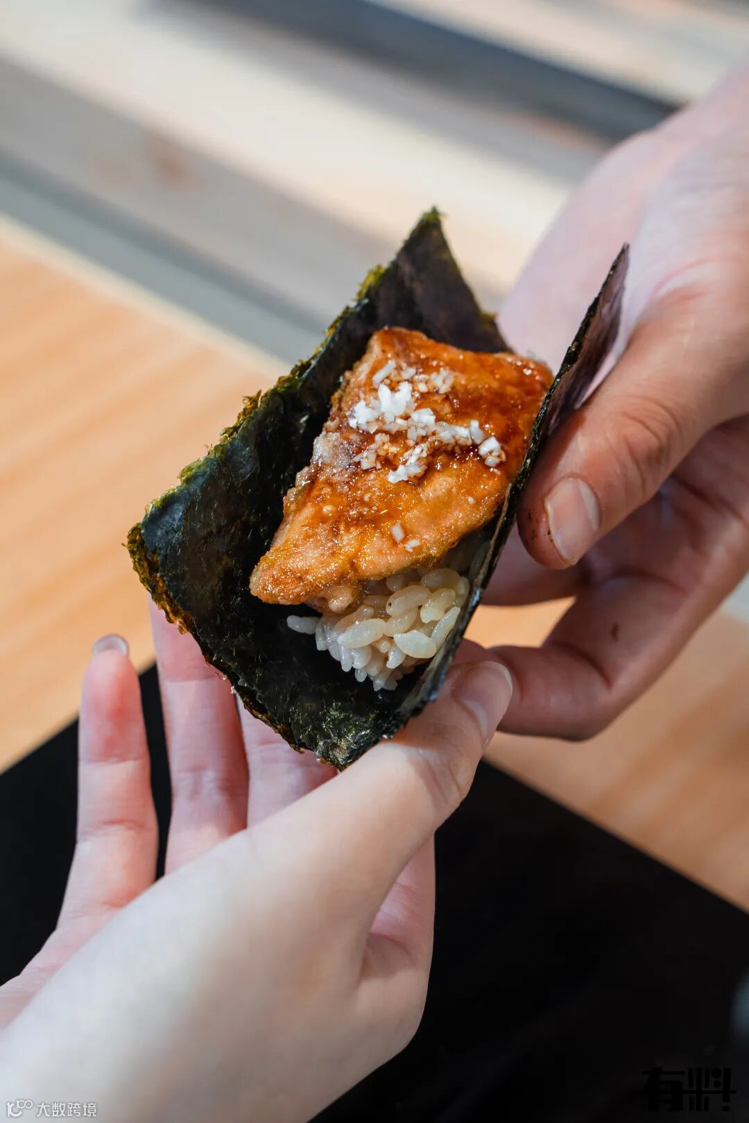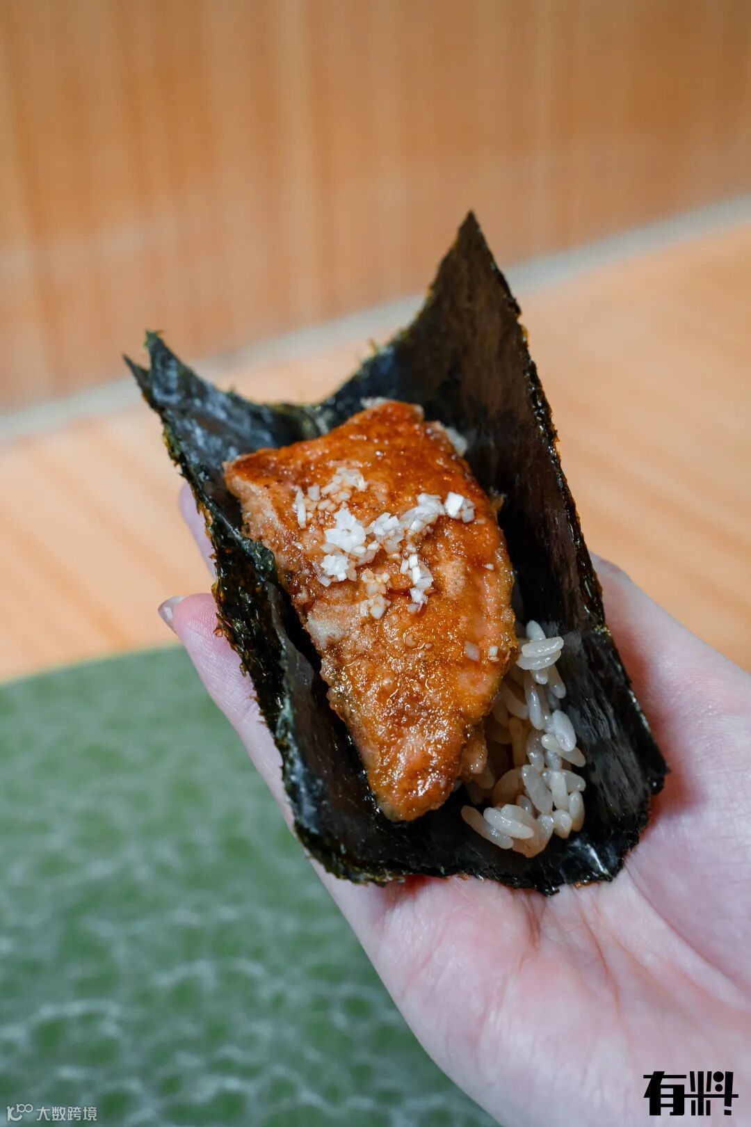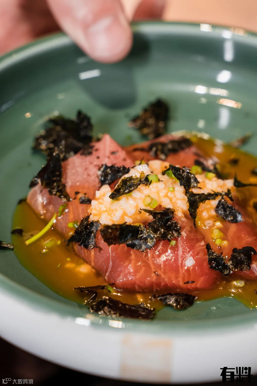 蓝鳍金枪鱼中腹淋上蛋液,再撒上紫菜口感十分丰富。
