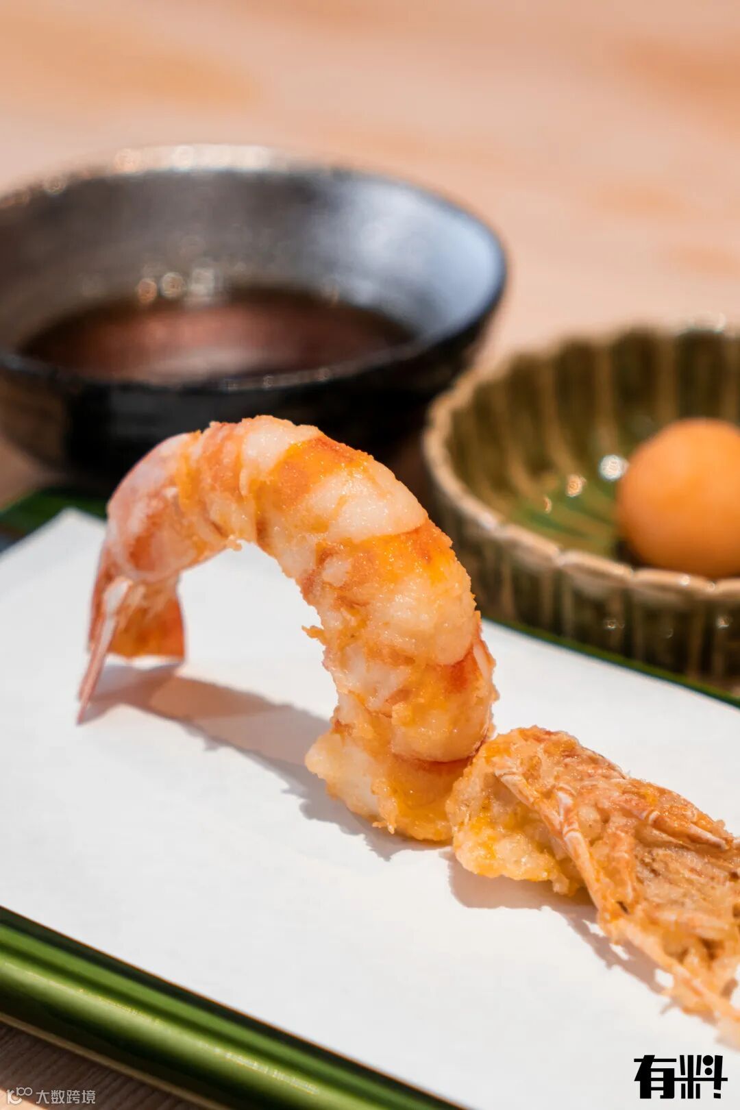 车海老就是日本车虾,经过油炸定型的虾头,色泽诱人,虾足虾钳完整,趁热咬下酥脆至极,虾香干脆不带油气。
