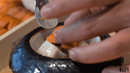 鲜艳夺目,肉质饱满,金黄色海胆诱惑力满分。口感就像是舌尖与大海暧昧,湿嫩滑软,鲜甜无比。