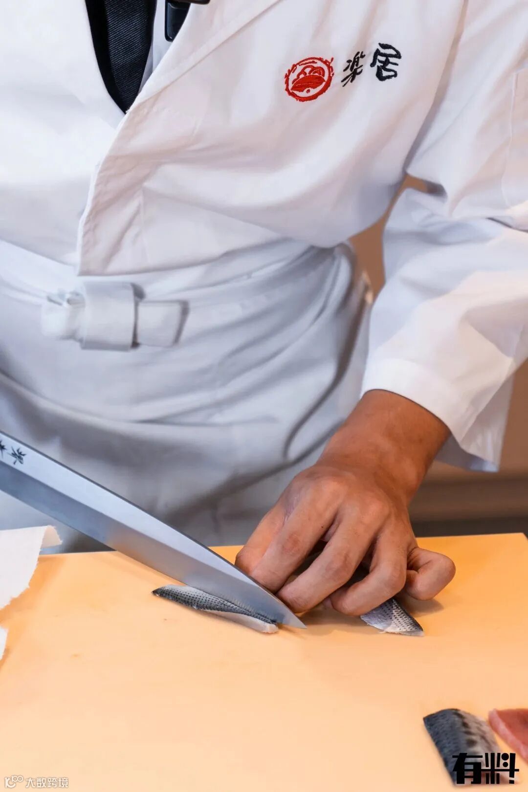 坐镇板前的师傅,资历资深,一招一式所展现的整体专业度无须赘述。利落地处理渔获,每一贯手握饱满挺括,充满匠心手作的温度。