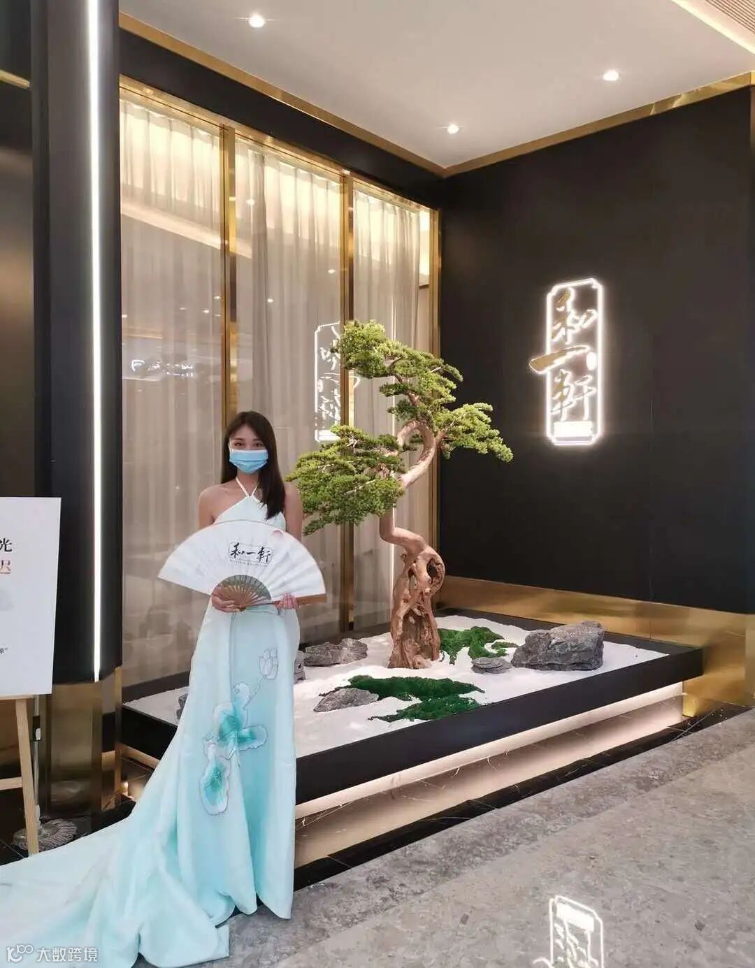 宾客们来到东莞世博园9号馆和一轩展厅门前,便被门口的小姐姐所吸引了,只见佳人衣着古典韵味的旗袍服饰,手持一把文质彬彬的折扇,令人不禁想要进店一探究竟。