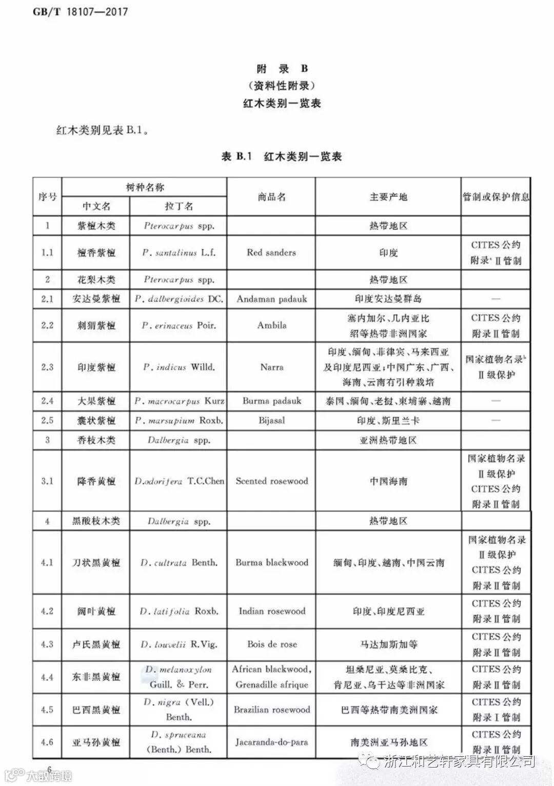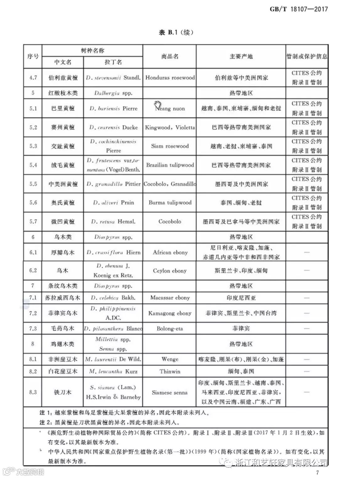 在“红木类别一览表”中,除树种名称、商品名、主要产地,还增加了管制及保护信息。