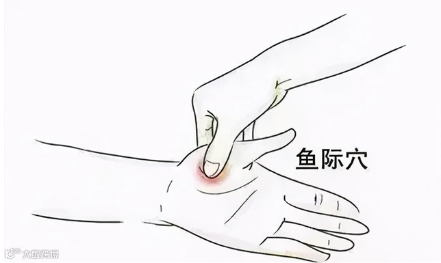 大指走的是肺经。大指麻木跟肺经有关。大指上的鱼际穴如果红的话,就是肺热;如果鱼际穴有青筋的话,就是肺寒;如果大指里面有纹路且发青的话,也代表肺寒,而且这种肺寒还会继续导致胃寒。