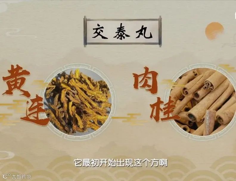 交泰丸主治心腎不交,有清上、温下的作用,其中黄连有清上焦之火的功效;肉桂有温补腎阳、引火归元的功效。
