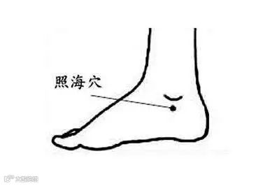 位置:照海穴是八脉交会穴,通阴蹻,在足内侧,内踝尖下方凹陷处。