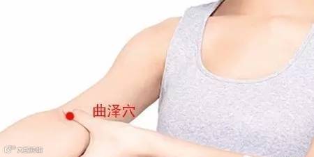 曲泽穴:在肘横纹中,当肱二头肌腱的尺侧缘。