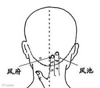 风池穴:人体风池穴位于项部,当枕骨之下,与风府穴相平,胸锁乳突肌与斜方肌上端之间的凹陷处。