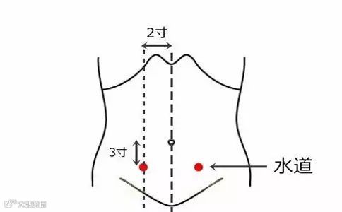 水道穴:位于人体的下腹部,当脐中下3寸,距前正中线2寸。