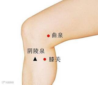 阳陵泉:在小腿外侧,当腓骨头前下方凹陷处。