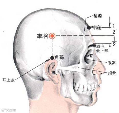 浮白穴:在头部,当耳后乳突的后上方,天冲与完骨的弧形连线的中三分之一与上三分之一交点处。