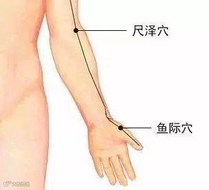 尺泽穴:位于肘横纹中,肱二头肌腱桡侧凹陷处。