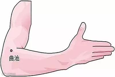 曲池:屈肘成直角,在肘横纹外侧端与肱骨外上髁连线中点。完全屈肘时,当肘横纹外侧端处。
