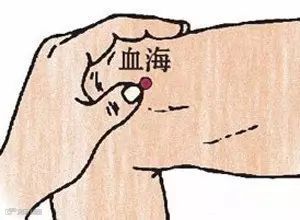 血海:屈膝在大腿内侧,髌底内侧端上2寸,当股四头肌内侧头的隆起处。