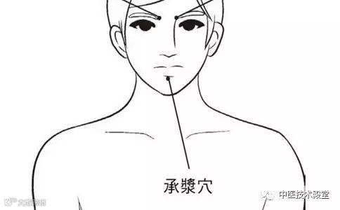 承浆穴:在面部,当颏唇沟的正中凹陷处。