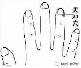 关冲穴:在手环指尺侧端,距指甲角0.1寸。