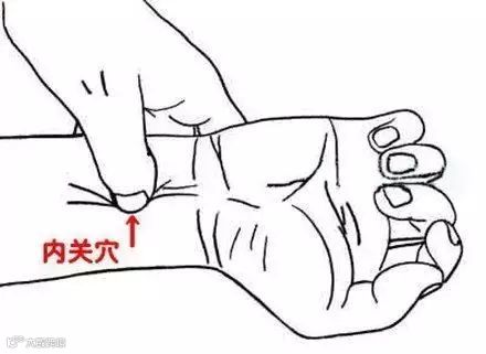 内关:位于前臂掌侧,当曲泽与大陵的连线上,腕横纹上2寸,掌长肌腱与桡侧腕屈肌腱之间。