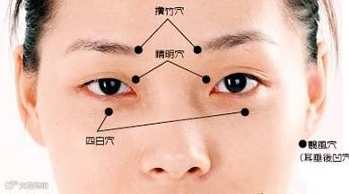 四白穴:目正视,瞳孔直下,当眶下孔凹陷处。
