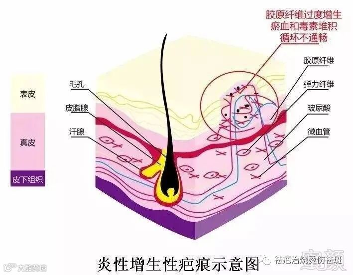 许多人都有这样的情况,在受伤的初期,认为小伤很快就好,不注意护理导致疤痕感染,引起肉芽组织过度增生,离炎性细胞越近,成肌纤维越多,疤痕形成越多。