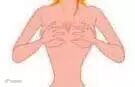 4、一手按住腋下部位,另一只手手掌托住一边乳房并轻轻向上推