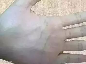 此时在脸部、腹部、脚部,特别在手掌和手背的青筋就非常明显。