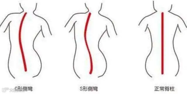 【脊柱侧弯】从正面看,脊柱向左或向右侧方弯曲,偏离中线,可以呈C形、S形。
